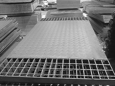 復合鋼格板常用系列3(扁鋼間距60mm)鋼格板作底板,也可采用系列1(扁鋼間距30mm)或系列2(扁鋼間距40mm)鋼格板;花紋鋼格板常用3mm厚板,也可采用4mm,5mm、6mm的板。
